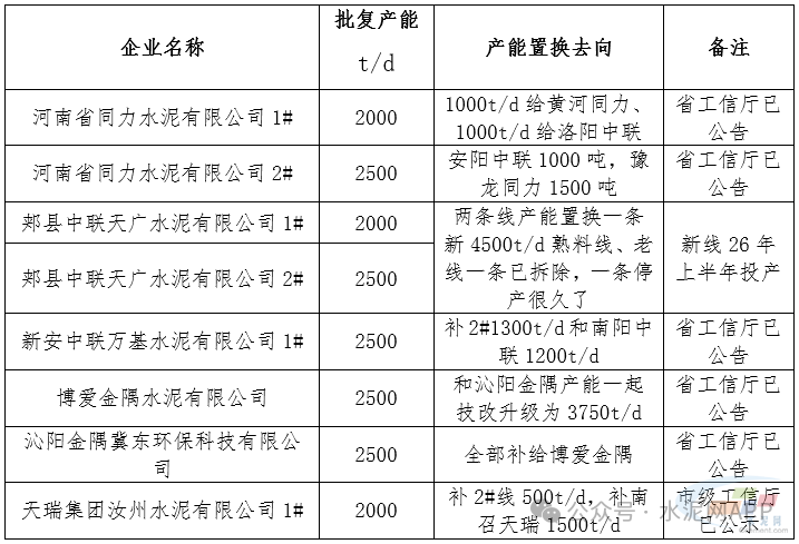 根據(jù)2025年度河南省工信部門發(fā)布的產(chǎn)能置換清單,結(jié)合河南省水泥生產(chǎn)線數(shù)據(jù),2025年度河南省已實(shí)質(zhì)性地關(guān)停全部2500t/d熟料線,成為繼山東省之后又一個(gè)全部關(guān)停2500t/d熟料線的水泥大省(特種水泥生產(chǎn)線除外);具體數(shù)據(jù)如下: