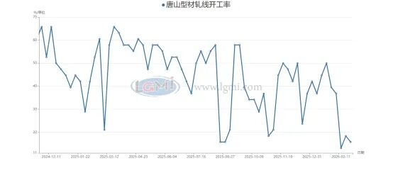 唐山調(diào)坯型鋼廠方面2026年2月開工率約為18%,遠低于2025年同期的40%左右,同比降幅超過20個百分點。這主要是由于調(diào)坯廠對原料成本更為敏感,在坯料價格高企的背景下,利潤空間被大幅壓縮,導致企業(yè)主動減產(chǎn)。環(huán)比方面2月開工率較1月的13%有所回升,環(huán)比提升約5個百分點。但整體仍處于歷史低位,復產(chǎn)節(jié)奏明顯慢于長流程鋼廠。唐山調(diào)坯廠開工率的低迷,反映出區(qū)域內(nèi)型鋼供應端收縮的格局仍將持續(xù)。