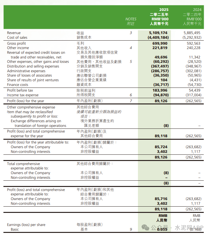 3月9日晚間,亞洲水泥(中國)發(fā)布截至2025年12月31日止年度業(yè)績,該集團取得收益51.09億元,同比減少13.19%;公司擁有人應占盈利(歸母凈利潤)8572.4萬元,2024年同期虧損2.64億元。公告稱,收益減少主要由于本集團產(chǎn)品銷量及平均售價于2025年下降所致。